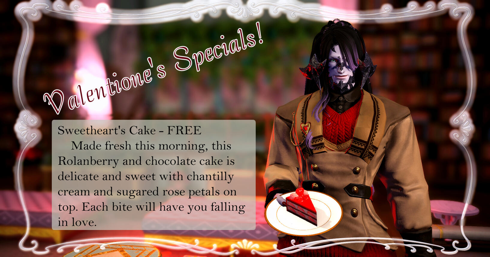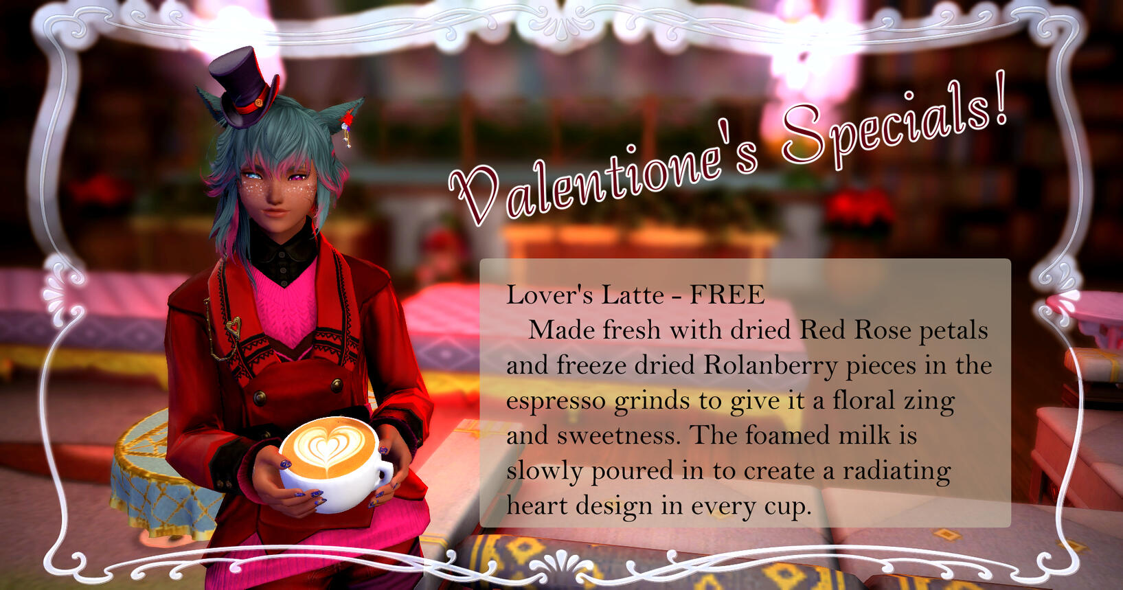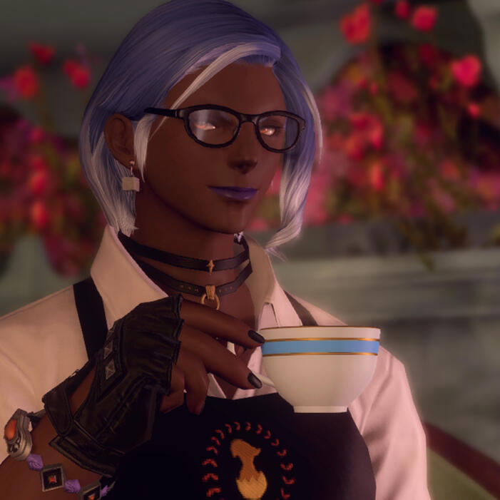 There once was a house in the middle of the woods...In actuality, Grandma's House isn't like that. We're a band of friends who came together to make a Free Company and then Arya got into roleplaying, lured Lavanda in, and now they all run a cute little cafe.We enjoy having bards come in and play on our stage as well as people who like Roleplaying and those who are more casual and just want a spot to chill. We focus on serving things you'd expect to find at your grandmother's house with a high focus on sweets.Current housing designed by Lavanda Kha.